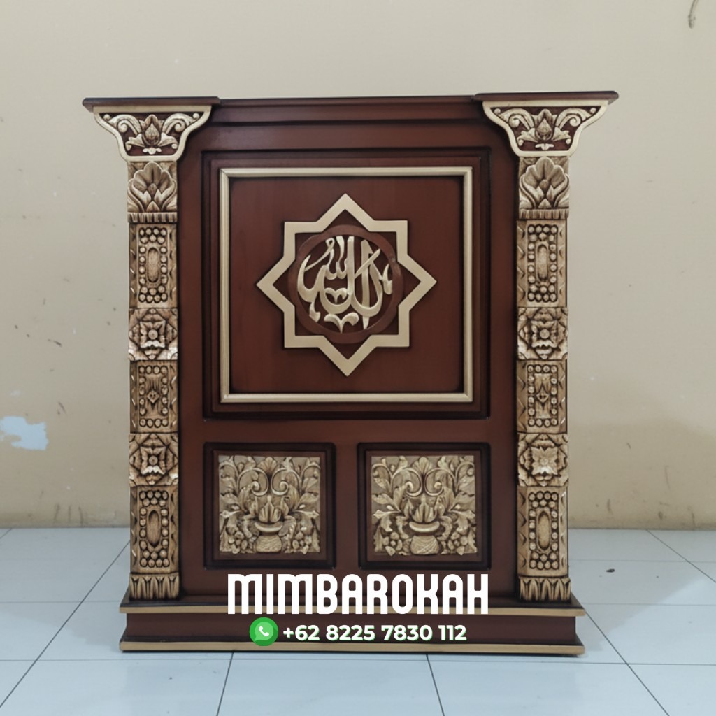 Selain mimbar masjid atap kubah, Juragan Mimbar Podium juga memproduksi mimbar jati minimalis murah seperti